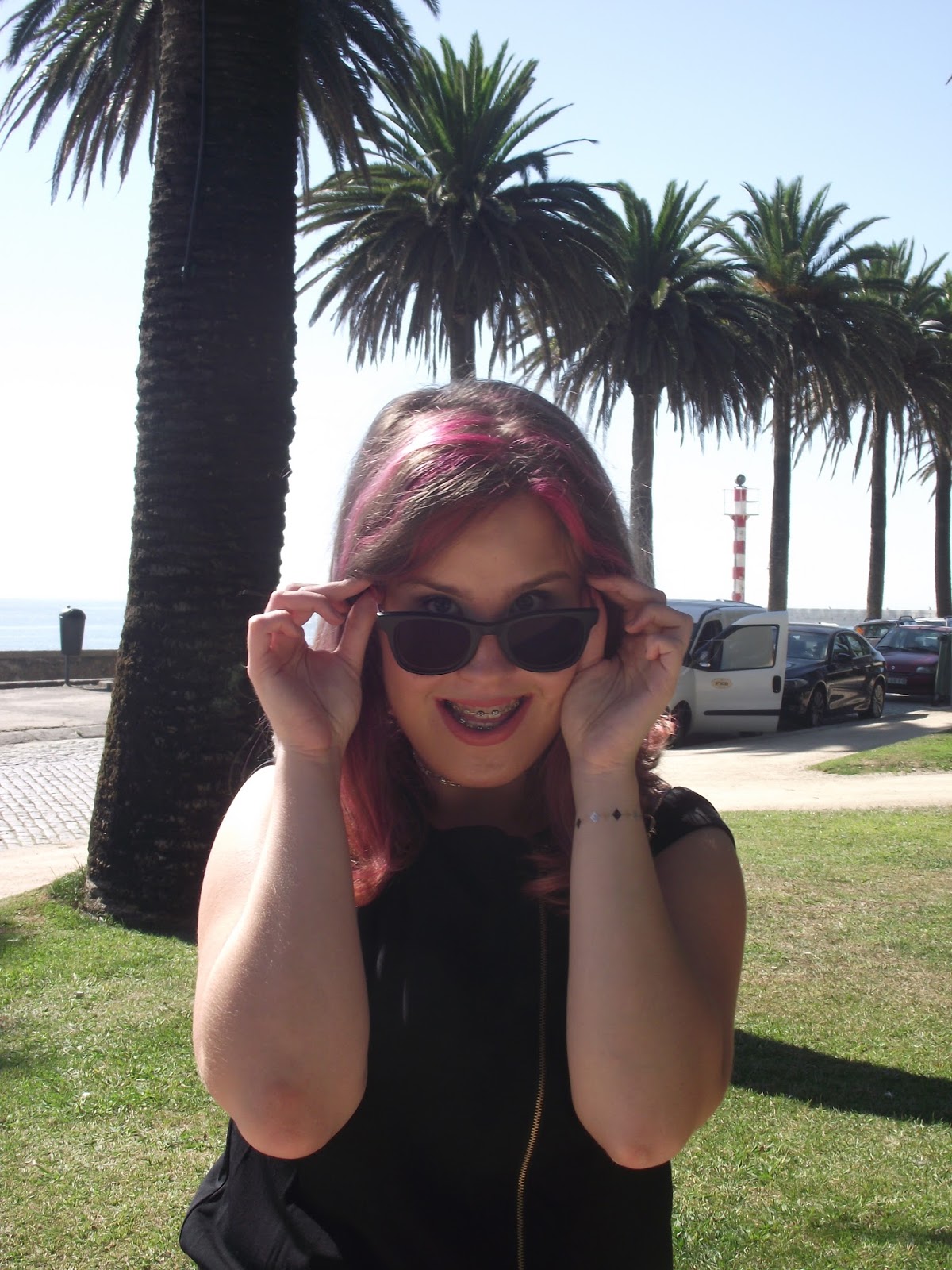 Acabei por não ter tempo nem paciência para definir as sobrancelhas, e usei uma das minhas bases de verão porque achei que o look ficava melhor com um tom de pele um pouco mais escuro. Também usei um lápis de lábios com o batom e arrependo-me, porque o vejo em todas as fotos e videos =P